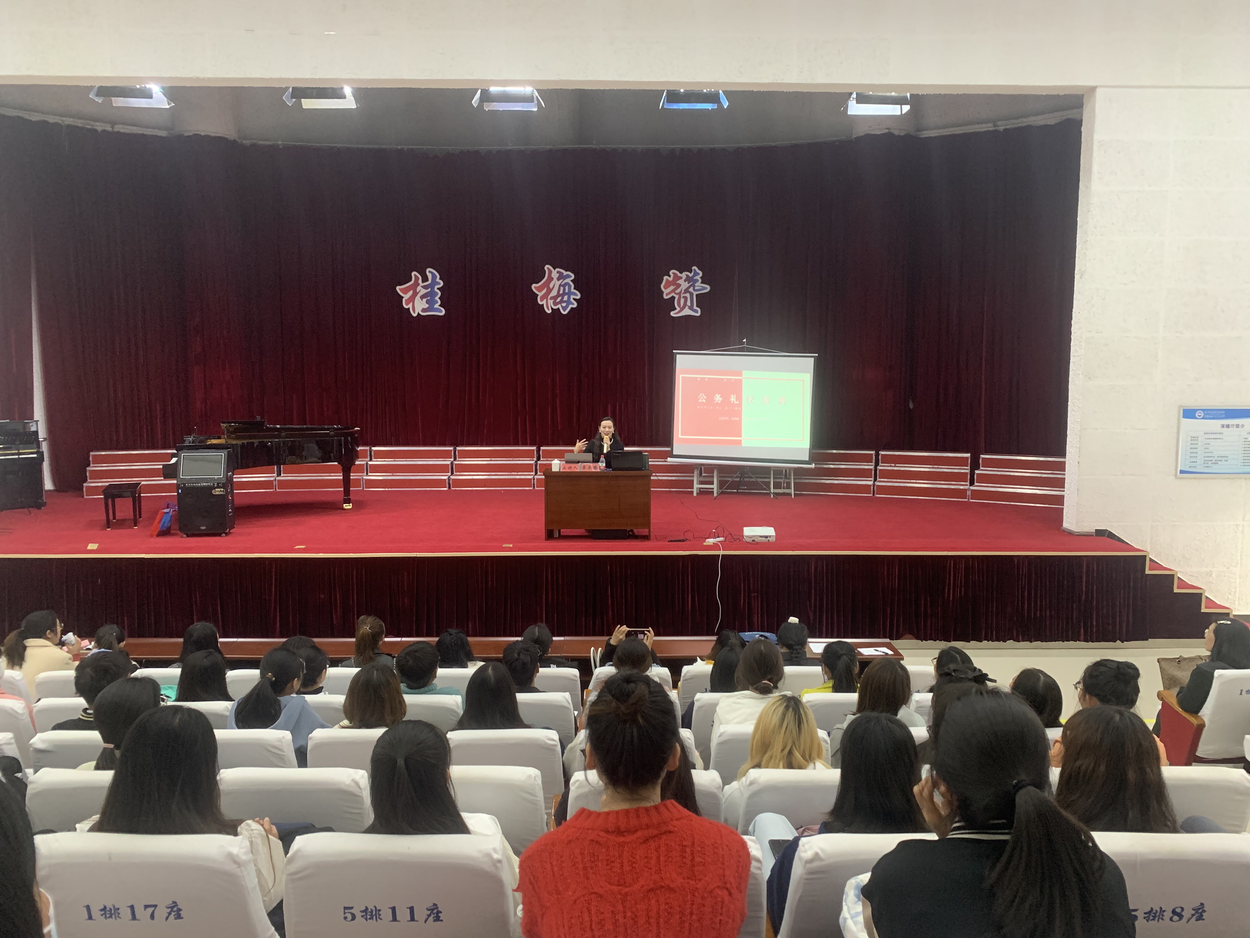 11月22日下午,我校在艺术学院演播厅举行了《教师礼仪与魅力形象》培训活动。本次讲座邀请了中国人才委员会高级礼仪训师、注册国际高级礼仪培训授权导师李柔臻为我校200余名女教师和女学生进行了礼仪培训。