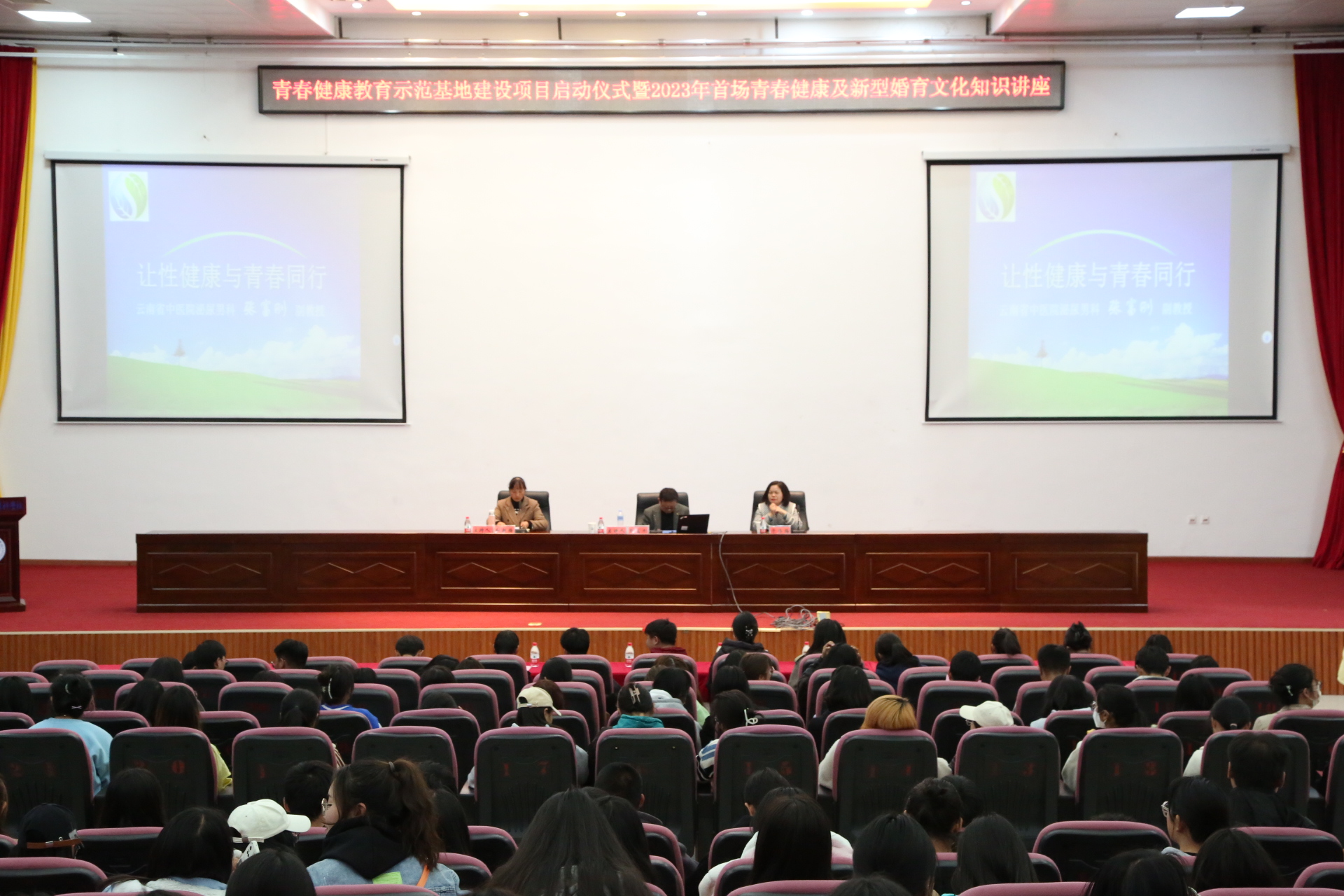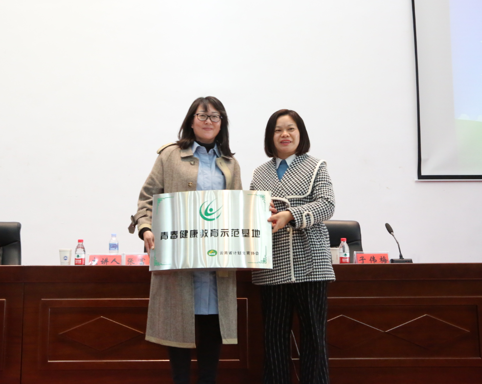 3月30日下午,云南省计划生育协会“青春健康教育示范基地”授牌仪式在学校图书馆报告厅举行。丽江市计生协副会长兼秘书长子伟梅出席授牌仪式。会议由组织部部长和新梅主持,学校480名师生代表参加。