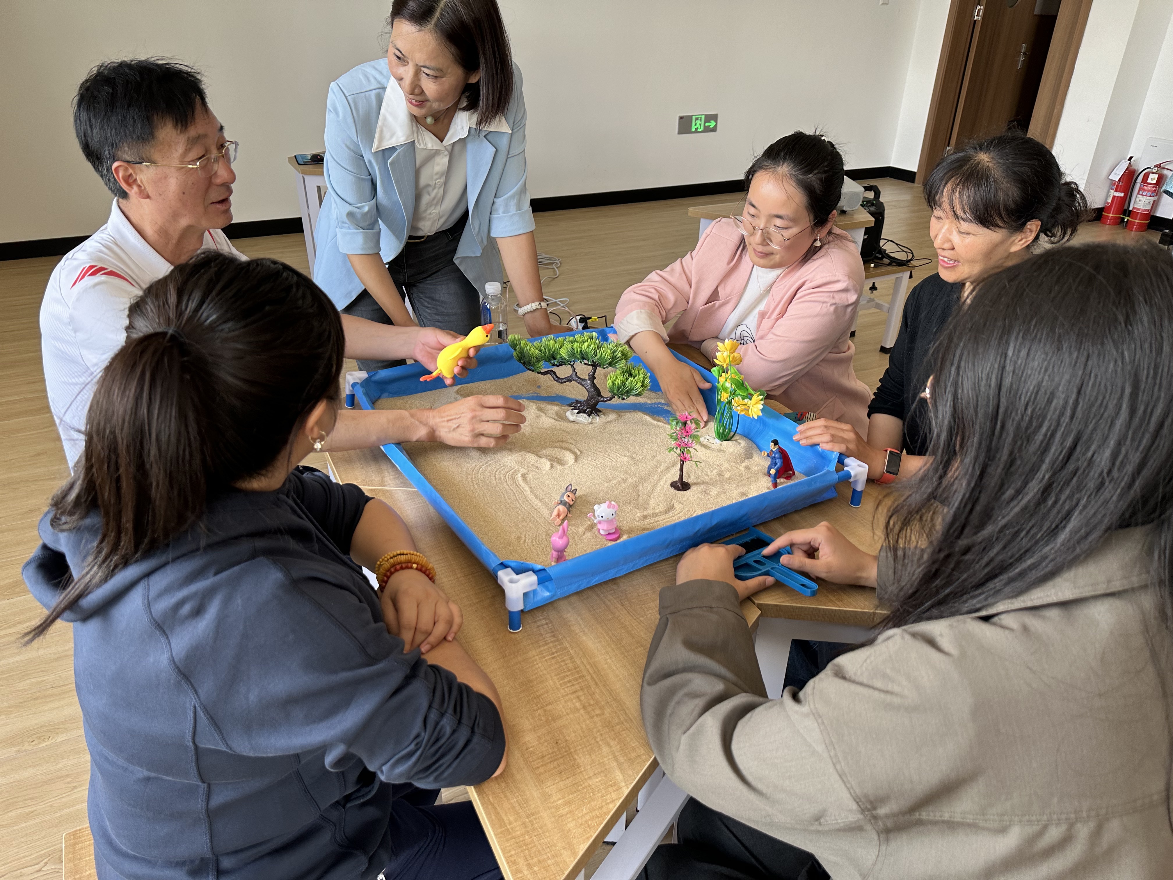 为进一步提升女教职工心理素质,缓解心理压力,让女教职工更加准确地了解自我,凝心聚力,增强团队协作性,校妇联积极扩展沟通渠道、搭建交流平台,7月5日下午,开展了“减压赋能 凝心聚力”沉浸式团体沙盘体验活动。中国心理学会结构式沙盘高级督导师、我校银龄教师杨云琳教授悉心指导女教职工开展团体沙盘活动,通过觉察自我、倾听他人、关注他人的过程中感受团体成员间互相配合、彼此呼应的心理能量,同时在团队中相互接纳、换位思考,进一步增强团队协作性。