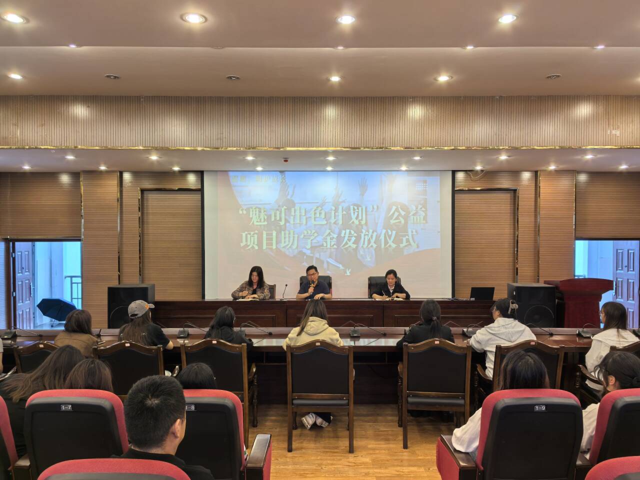 仪式上,曹建秋副主席介绍了“魅可出色计划”的项目背景和项目意义,对获得助学金的同学表示祝贺,她寄语受助的女大学生们,希望她们肩负起时代责任,努力成为自尊、自信、自立、自强的新时代优秀女性,不负青春年华,不负伟大时代,不负人民期待。她鼓励她们怀抱热情,积极向上,以乐观的心态迎接生活,以奋斗的姿态绘制精彩人生。